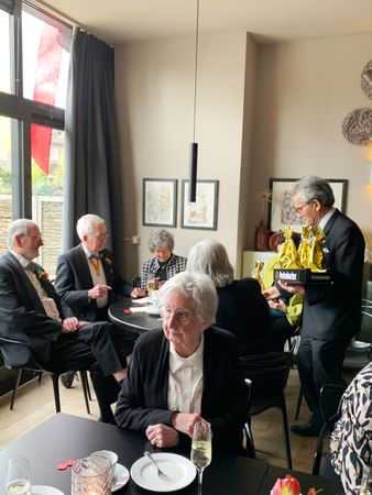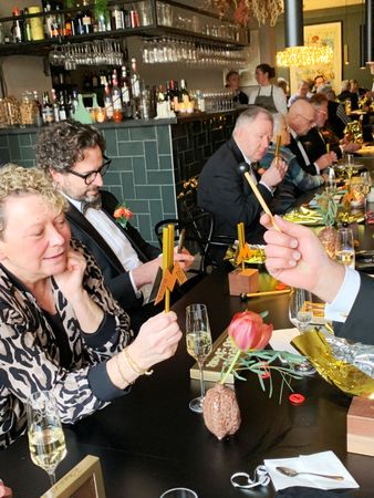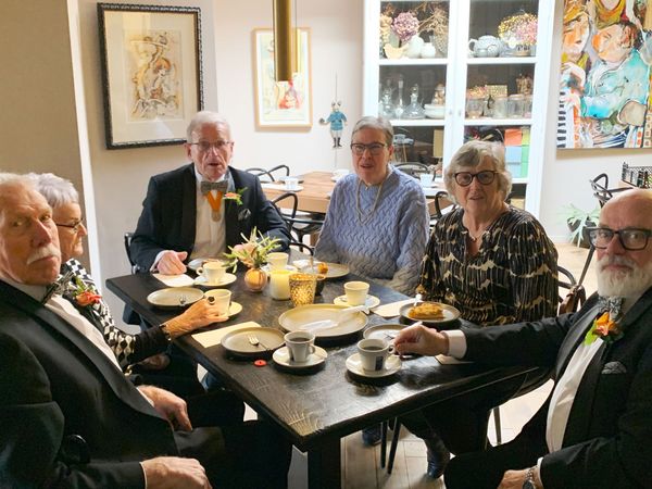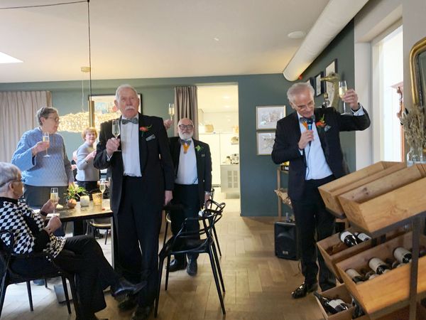 Onze outfits worden afgestemd op het concert. Natuurlijk dragen we nog steeds onze smoking, maar dit wisselen we af met kleurrijke corsages, muzikale piano-bretels en stijlvolle giletjes. Daarbij ontbreken de witte Mignon-sjalen niet.