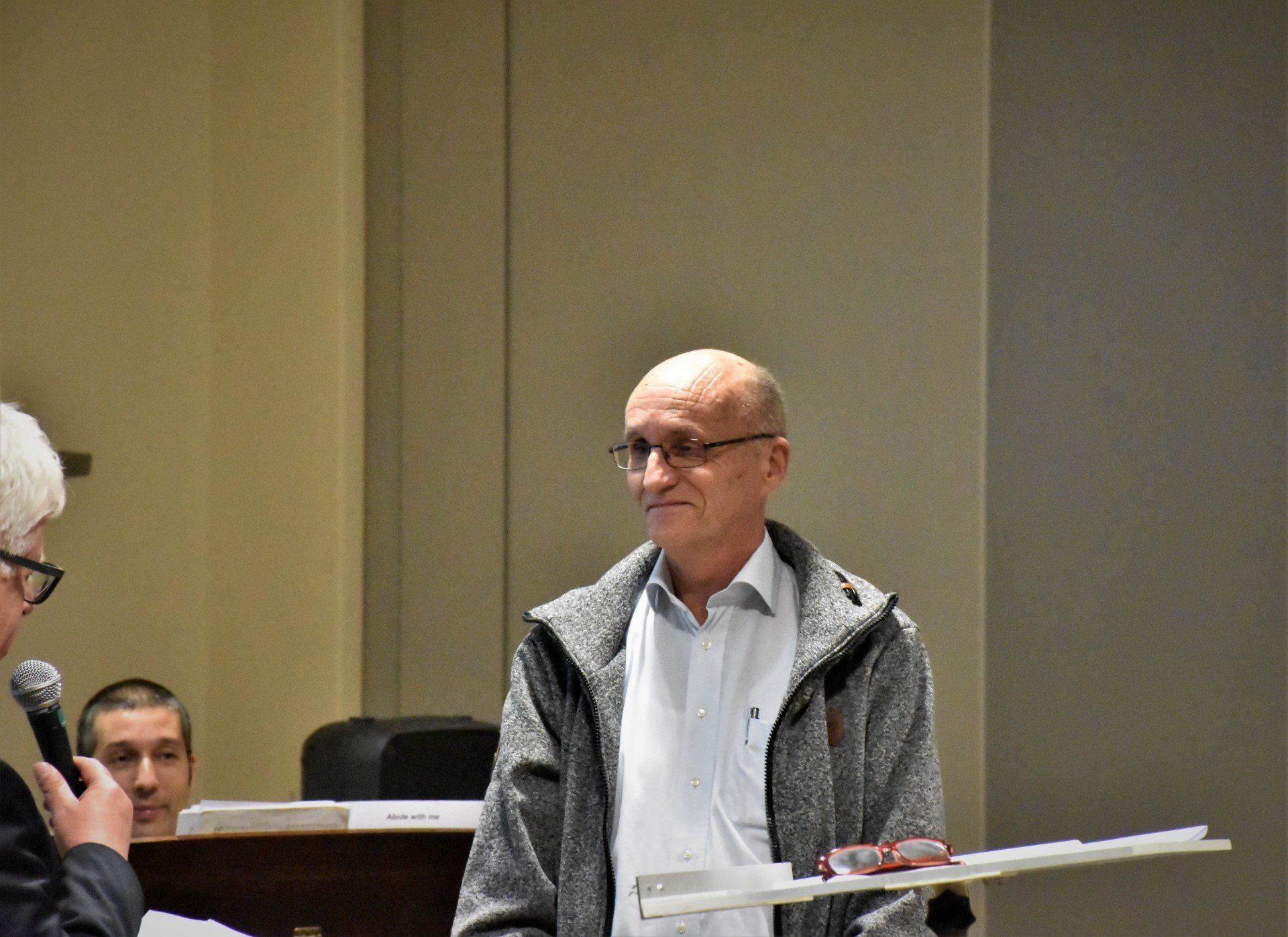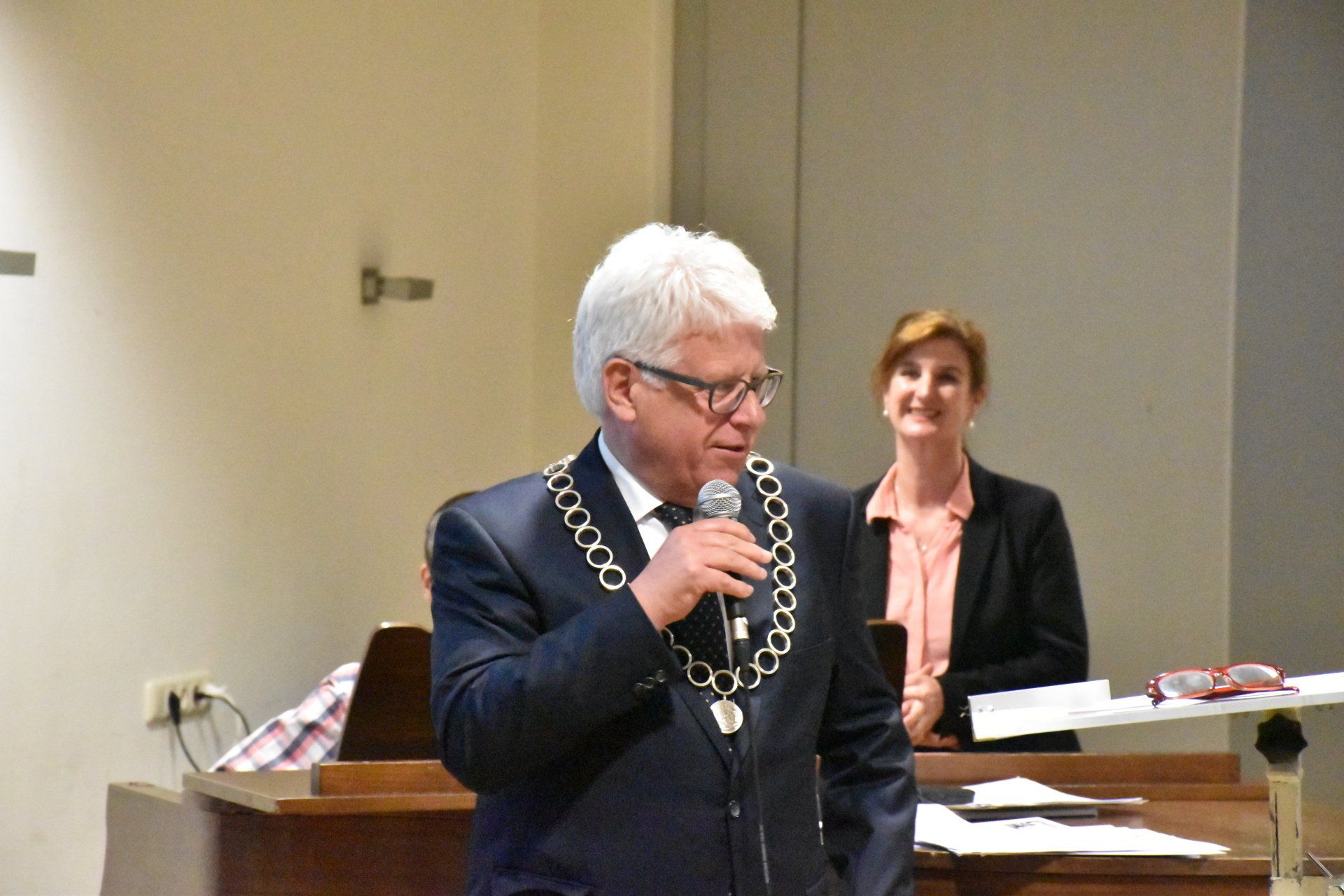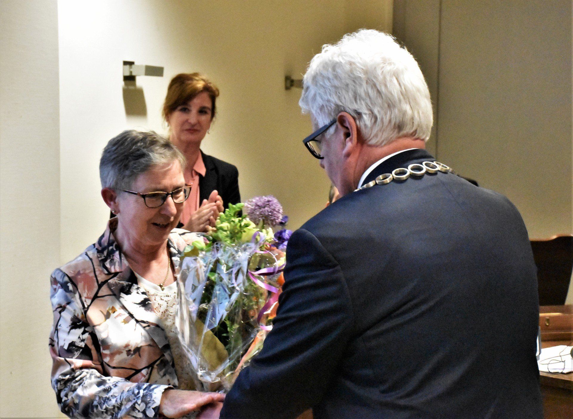 Op maandag 20 mei 2019 is tijdens de repetitie van ons koor onze 2e secretaris Frans Storcken gehuldigd door Burgemeester Sjraar Cox. Hij kreeg door de burgemeester de Erespeld van de gemeente Sittard-Geleen uitgereikt.