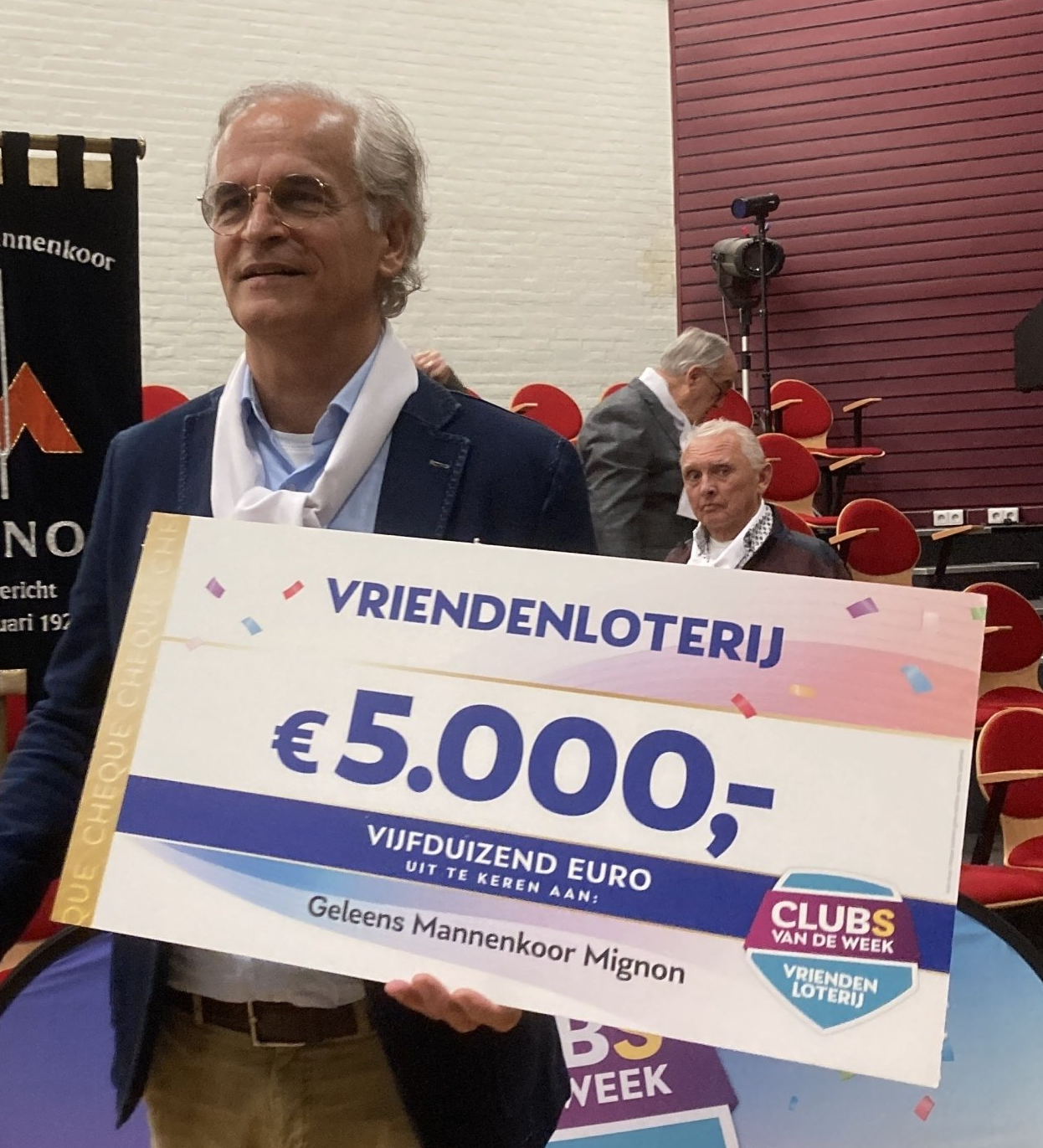 Onze trotse voorzitter Huub Schäfer ontvangt de cheque van